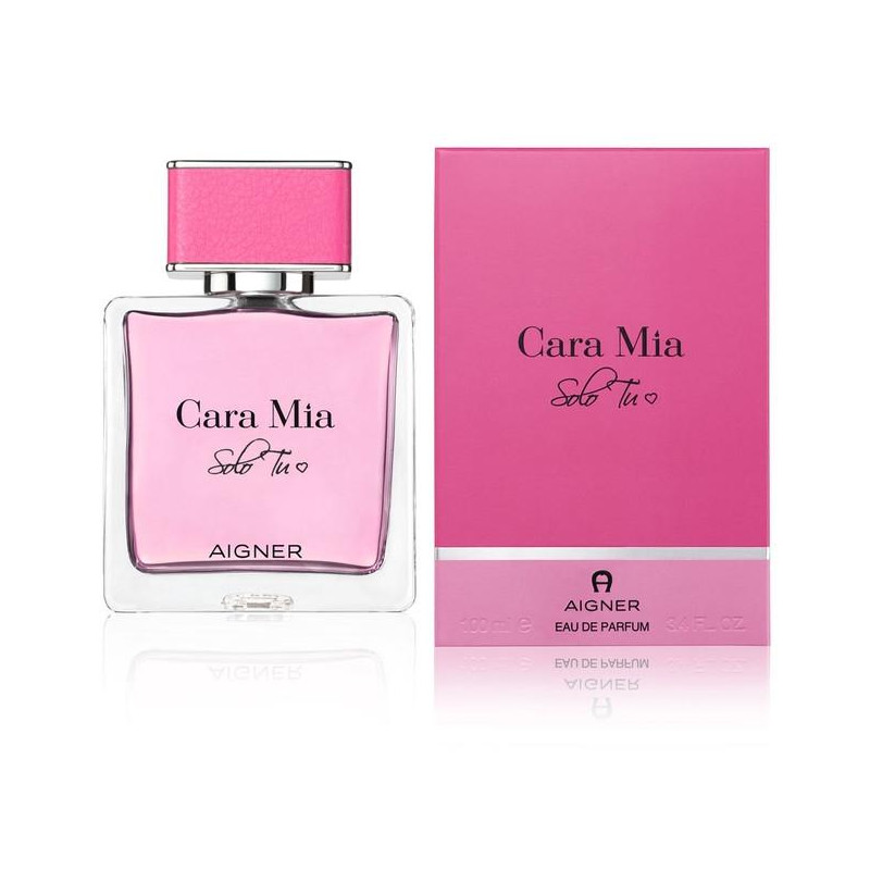 Цветни След премиерата си, класическия Cara Mia се превърна в един обожаван аромат с изключително присъствие. През 2018 година Aigner ни напомня за него с новото по-нежно и романтично издание Cara Mia Solo Tu. В началото той е плодов, символизиращ сладостта от любовта и живота. В сърцето му е заложен букет от прелестни цветя, които изразяват женствеността и нежността на една дама. А базата подсилва аромата и му придава незаменим уют с приятни дървесни акорди. Бутилката, в която е събран парфюма е изработена от стъкло, с класическата правоъгълна капачка, облечена в прелестна розова кожа.