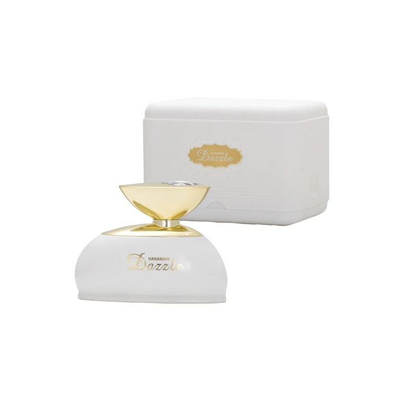 Al Haramain Dazzle е флорално-плодов аромат за жени, лансиран 2017 година. В най-връхната част на уникалния парфюм ще усетите леко тръпчиви нокти на зрели плодове от касис. Бутилката е с изящна форма и завършва с прекрасна капачка с кристал. Al Haramain Dazzle е хипнотизиращ, който е идеален за елегантно облекло в хладно време. Свежа като лимон червена роза се появява в сърцето, смесена с деликатно парфюмирани плодове личи и хрупкави билкови, опияняващи тонове. Al Haramain Dazzle е сладък, младежки дамски парфюм, който съчетава плодови нотки с интригата и подправката на пачули, ароматът затваря с топли, земни и пикантни нотки.