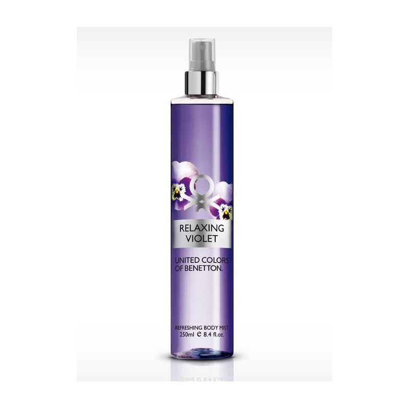 Benetton Relaxing Violet спрей за тяло носи уханието на едно от най-нежните и красиви градински цветя – виолетка. Ароматният спрей ще Ви зареди с енергия и позитивизъм, а удобната му форма позволява да го вземете, където и да отивате. Подходящ за ежедневна употреба. Дерматологично тестван.