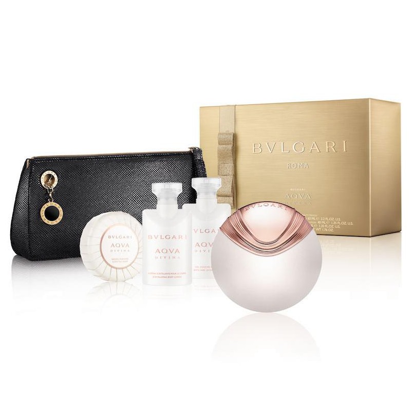 Bvlgari Aqva Divina е свеж, женствен и ефирен парфюм, който докосва нежно душата и омагьосва сетивата. За почитателките на това божествено венерено ухание от марката създават луксозни подаръчни комплекти. В тях поставят дизайнерски несесер с любимия парфюм и комбинация от ароматни продукти за тяло. Комплектът със сигурност ще очарова и зарадва истински своята нова притежателка!
