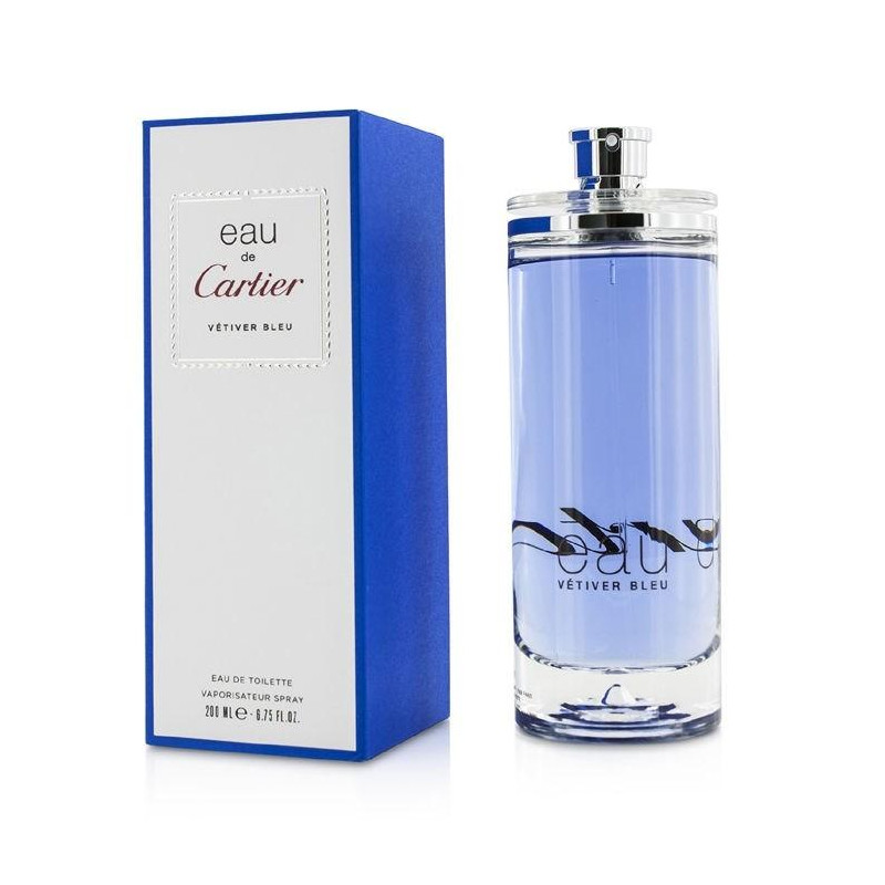Ароматни Cartier Eau de Cartier Vetiver Bleu е парфюм, в който са перфектно балансирани фини ухания, топли и чувствени аромати и кристална свежест. Главната съставка, около която се изгражда благоуханната композиция е ветивера, към който са добавени и леко опушени нюанси за повече спокойствие и мъжественост. Съставът на Cartier Eau de Cartier Vetiver Bleu обединява красотата на разнообразни нюанси ветивер и ледено студен аромат на мента, подчертани с дървесното ухание.