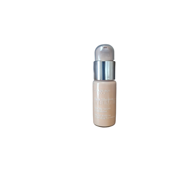 Clarins Skin Illusion Velvet Foundation е луксозен фон дьо тен с лека текстура и естествено матов завършек, създаден да придаде на кожата естествен, здравословен вид. Този продукт комбинира предимствата на фон дьо тен с грижата за кожата, като осигурява свежо и гладко покритие през целия ден. Вдъхновен от успешната линия Skin Illusion, този фон дьо тен предлага усещане за "втора кожа", без да утежнява или създава усещане за маска. Обогатен с натурални растителни екстракти, Skin Illusion Velvet Foundation е перфектен за тези, които искат естествено изглеждащ тен с матов финиш.