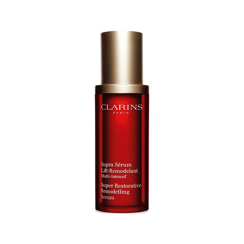Clarins Supra Serum Lift-Remodelant е интензивен серум за контуриране и възстановяване кожата на лицето. Продуктът предлага изключително лечение за зрялата кожа, като същевременно намалява появата на възрастови петна. Скъпоценният екстракт от харунгана (лечебно дърво от Мадагаскар) спомага за повдигане на лицевия контур и предотвратява топенето на мастната тъкан. Редовната употреба води до видими резултати: