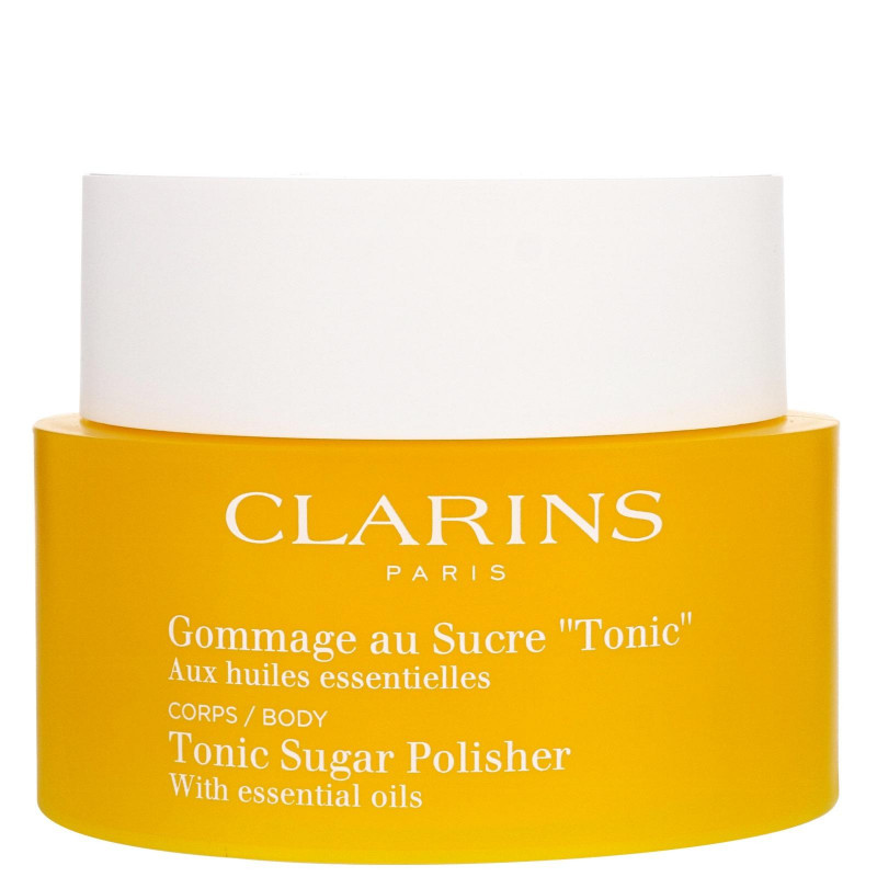 Clarins Tonic Sugar Polisher е блестящ продукт, с който смело ще си направите спа-терапия изцяло в домашни условия. Съставен и обогатен от етерични масла от розмарин, бразилско розово дърво, мента и захарни солни кристали, скраба за тяло ще отстрани мъртвите клетки, замърсяванията и ще хидратира сухата кожа с лекота. Кожата се тонизира, изглажда и „преражда“ в целия си блясък.