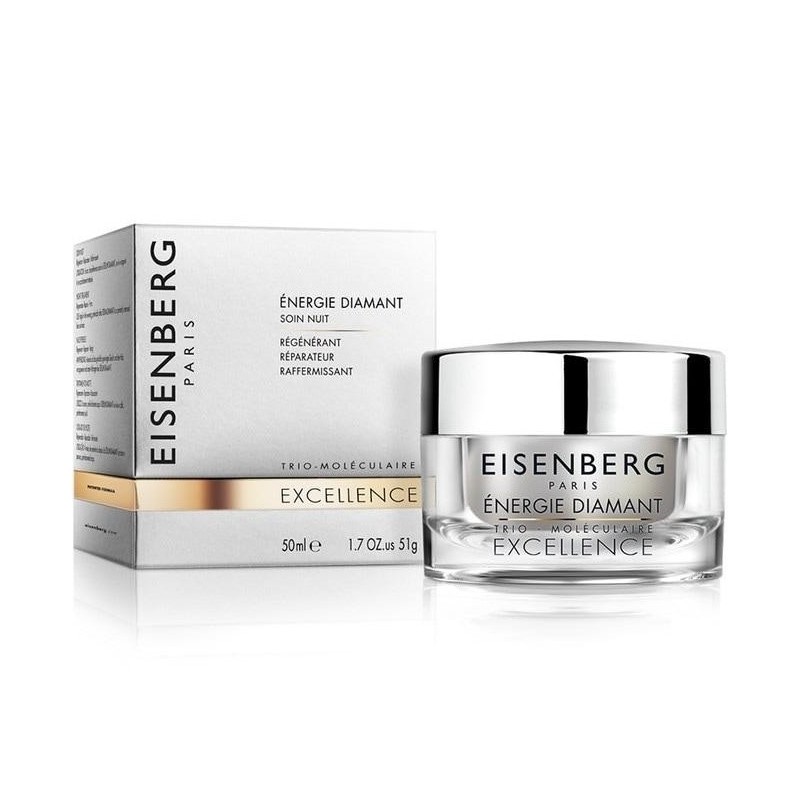 През нощта кожата се възстановява и регенерира, затова е важно да ѝ осигурите най-доброто подхранване и хидратация. Eisenberg Excellence Energie Diamant Soin Nuit е луксозен нощен крем, обогатен с диамантен прах, който възстановява блясъка, еластичността и здравия вид на кожата.