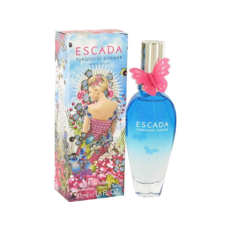 Акватични Escada Turquoise Summer е тоалетна вода за жени вдъхновена от атмосферата на лятото, аромата на плодове, поляните обсипани с цветя и цветните пеперуди, които създават много настроение. Съблазнителен плодово-цветен аромат, с който ще се усетите жизнена и привлекателна. Прекрасна ароматна композиция, която вълнува и вдъхновява, която Ви зарежда с енергия, подарява Ви чувство на безкрайна почивка! Още с нанасянето на първата капка от този еликсир Вие ще усетите полъха на лятните емоции, ще се пренесете в света на ваканционни романи, страстните танци, веселието. Escada Turquoise Summer EDT се появява за първи път на пазара през 2015 година.