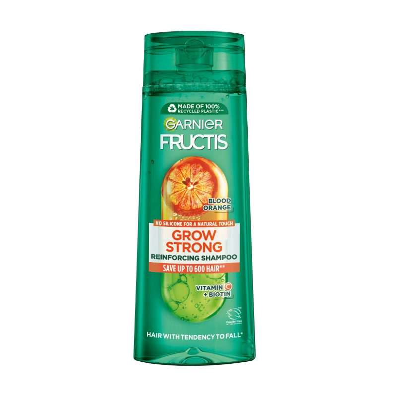 Garnier Fructis Grow Strong Vitamin е укрепващ шампоан, създаден за изтощена и склонна към накъсване коса. Формулата му съдържа витамин C и биотин, които укрепват косъма от корена до върха, подпомагат растежа и придават на косата жизненост и блясък.