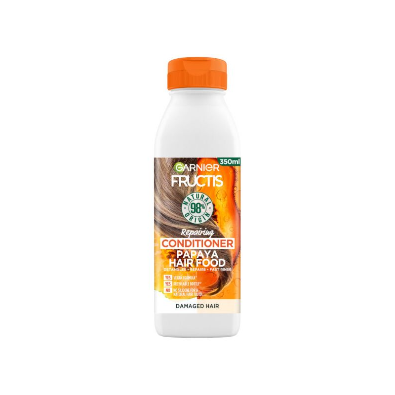 HAIR FOOD БАЛСАМ ЗА УВРЕДЕНА КОСА Веган формула* с 98% съставки от естествен произход**. Текстурата му веднага прониква в косъма, възстановява и прави косата по-лесна за разресване. *Веган формула: не съдържа съставки от животински произход или техни производни. **Останалите 2% от съставките са необходими, за да се осигури приятно усещане и добро запазване на формулата.