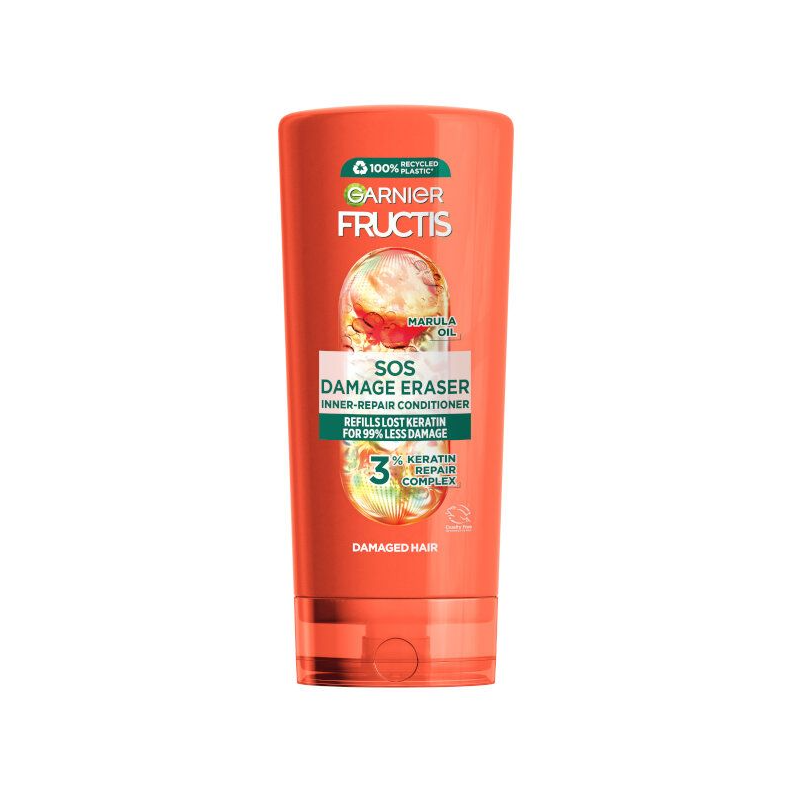 Garnier Fructis SOS Repair е възстановяващ балсам, специално създаден за силно увредена, суха и накъсваща се коса. Обогатен с амла и течен растителен кератин, той укрепва косъма, намалява накъсването и възстановява увредените зони, като придава мекота и блясък.