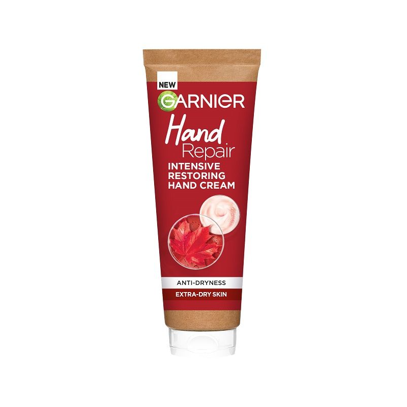 Garnier интензивен обновяващ крем за ръце обогатен с кленов сок . Обновяващ крем за ръце за изключително суха кожа. Осигурява 48-часова** хидратация, за усещане за мека и еластична кожа на ръцете. Дерматологично тестван. *Обогатен с кленов сок. **Инструментален тест, 24 жени.