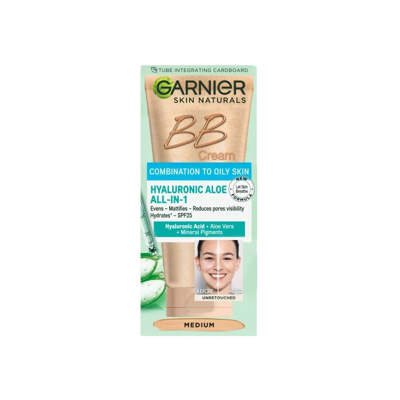 ДНЕВЕН BB КРЕМ ЗА СМЕСЕНА ДО МАЗНА КОЖА, със SPF 25. Светъл нюанс. Новата формула, обогатена с хиалуронова киселина, екстракт от алое вера и минерални пигменти, се адаптира към естествения цвят на кожата като я оставя да диша. Предимствата на този BB крем присъстват във всички стъпки от дневната рутина: фон дьо тен + хидратиращ крем + UV защита.*Самооценка, 53 потребители. При продължително излагане на слънце използвайте необходимата слънцезащита. Да не се съхранява на температура, по-висока от 45°C.
