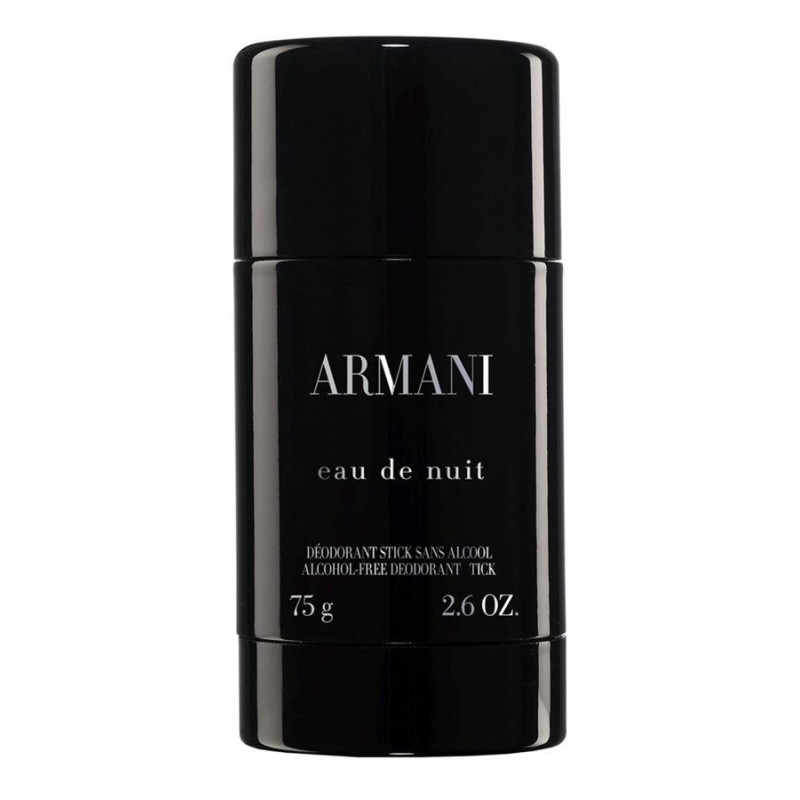 Малко след лансирането на парфюма Giorgio Armani Eau de Nuit , на пазара се появява и луксозна ароматна линия от продукти за тяло. В нея ще откриете дезодорант стик против изпотяване, който се грижи за хидратацията и свежестта на кожата. Притежава ефирното ухание на парфюма. Дерматологично тестван. Подходящ за ежедневна употреба.