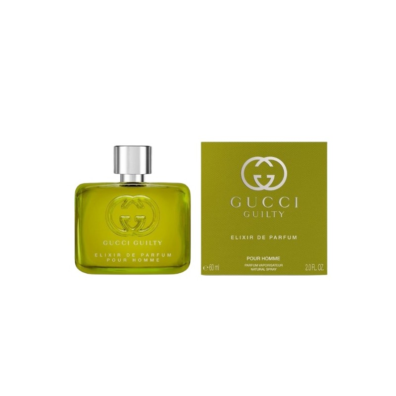 Амброви Gucci Guilty Elixir de Parfum Pour Homme е дървесно-амбров кожен аромат за мъже, лансиран през 2023 година. Създаден от парфюмеристите Куентин Биш и Натали Чето, този парфюм представлява дръзко изявление и цветна ексцентричност, насърчавайки мъжете да приемат своята автентична същност и да празнуват безбройните форми на любовта.