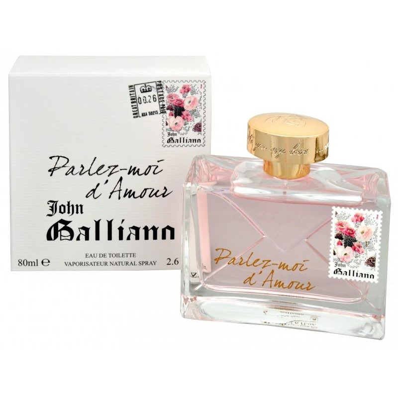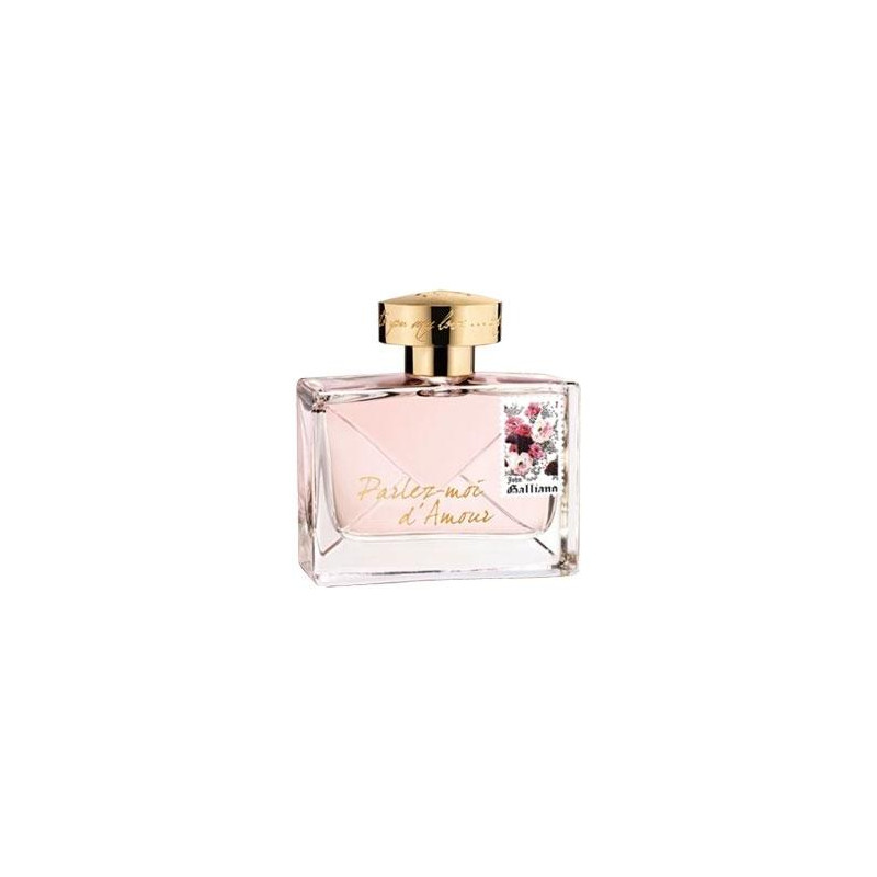Цветни John Galliano Parlez Moi d`Amour е модерен и амбициозен аромат, носещ романтичното име на песента на Едит Пиаф "Parlez-Moi d'Amour" или "Говори ми за Любов". Съставът на този аромат е изпълнен с вълнуващи контрасти, които целят да направят това творение на Галиано наистина страхотно. Композицията е дело на Alienor Massenet.