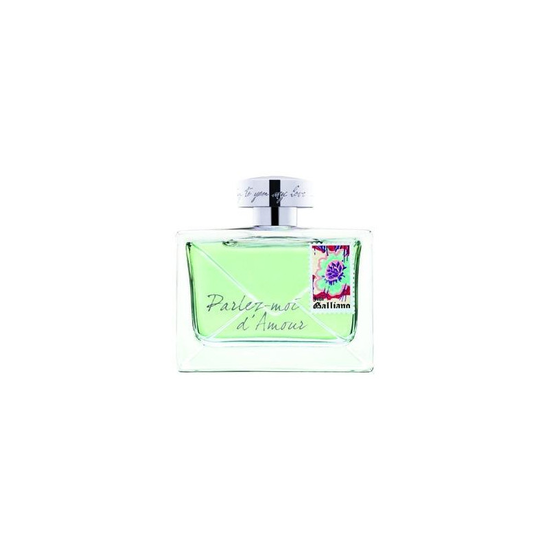 Цитрусови John Galliano Parlez Moi d`Amour eau Fraiche е прекрасно издание от John Galliano, представено на пазара през 2012 година. Възхитителният аромат е уловил в себе си романтичният полъх на свежи цитруси и чувствени флорални ухания. Композицията се открива с приключенската комбинация от джинджифил и грейпфрут. Сърцето е изпълнено с романтика - бели рози, жасмин и френско грозде танцуват в ритъма на любовта. Бял мускус и кипарис даряват характер на аромата и отговарят за неговата дълготрайност и грандиозен финал. Кокетната стъклена бутилка носи формата на класическото издание и е украсена с очарователна сребърна капачка. Прекрасният й свеж зелен цвят ясно Ви приканва да опитате от вълшебството, носещо името John Galliano Parlez Moi d`Amour eau Fraiche.