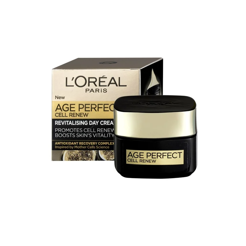 L'Oreal Paris Age Perfect Cell Renewal е възстановяващ дневен крем против стареене, създаден да подобри регенерацията на клетките и възвърне сияйния вид на кожата. С възрастта естественият процес на обновяване на кожните клетки се забавя, което води до загуба на жизненост, еластичност и поява на бръчки.