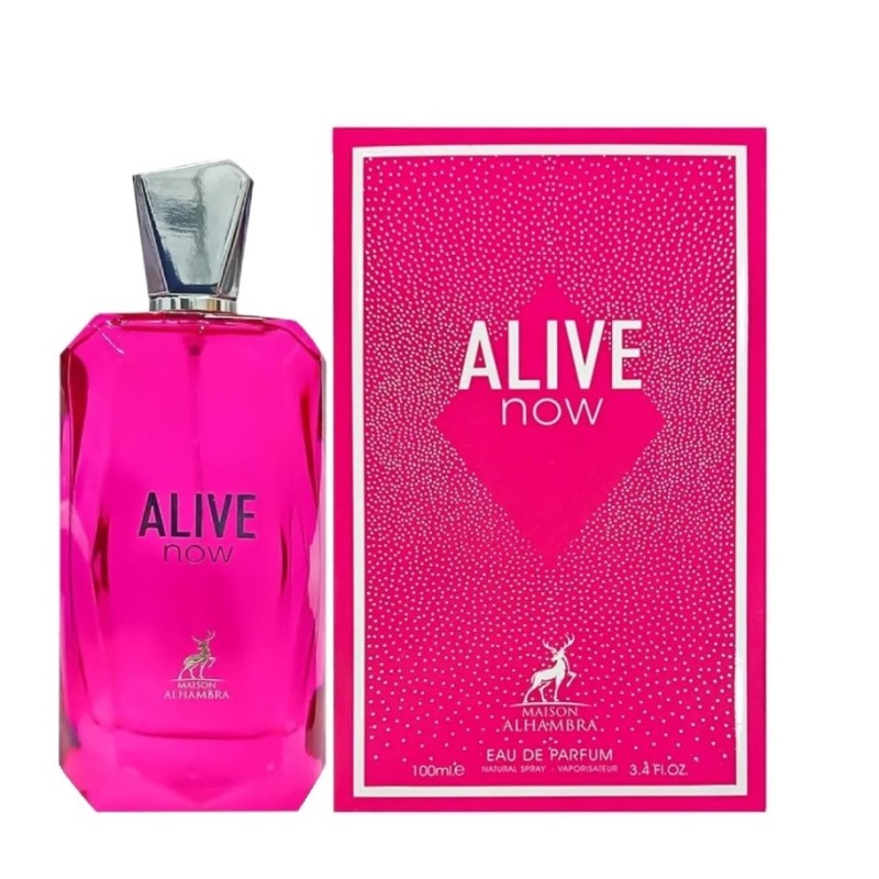 Плодови Maison Alhambra Alive Now е изискана парфюмна вода за жени, създадена от известната арабска парфюмерийна къща Maison Alhambra. Този аромат съчетава плодови, цветни и дървесни нотки, създавайки свежо и енергично ухание, което е идеално за динамични и уверени жени. Със своето изтънчено и дълготрайно присъствие, Alive Now е перфектен избор за ежедневна употреба през пролетта и лятото. Парфюмът е вдъхновен от Mugler Angel Nova.