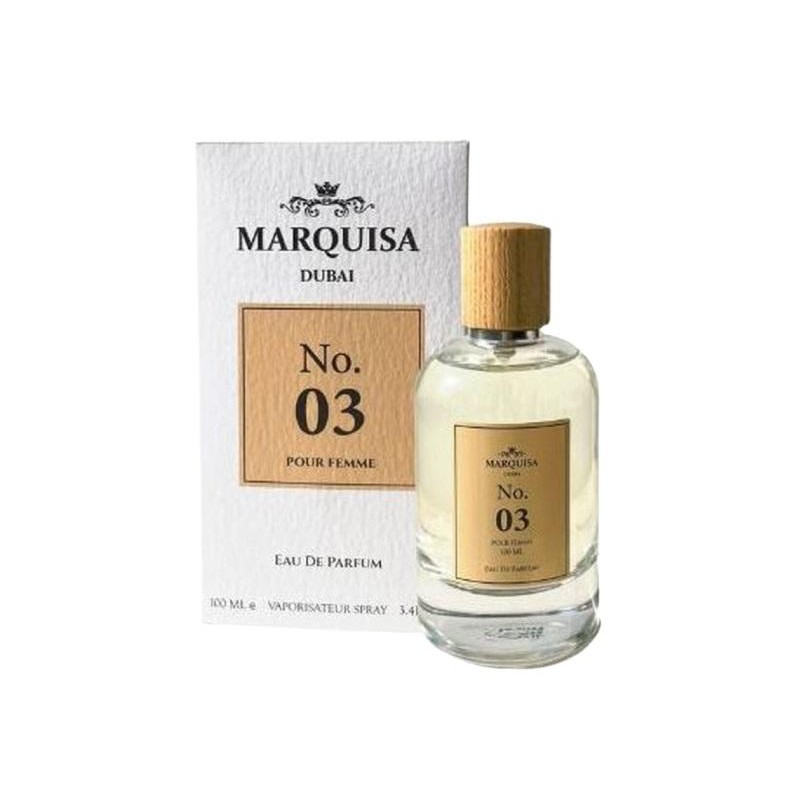 Marquisa Dubai No. 03 Pour Femme принадлежи към категорията на дамските парфюмни води с ориенталско-флорален ароматен профил, подходящи за жени, търсещи елегантност и изтънченост.