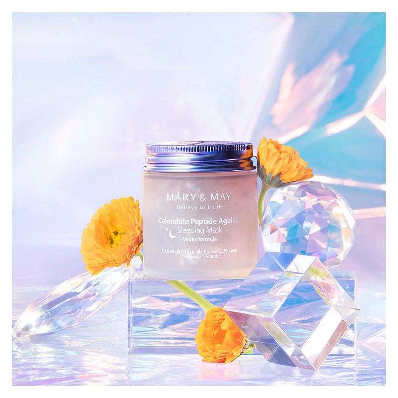Открийте тайната на вечната младост с Mary & May Calendula Peptide Ageless Sleeping Mask. Тази нощна маска за лице е създадена да възстановява и подмладява кожата ви докато спите. Обогатена с цветове невен и мощни пептиди, тя действа през нощта, за да се събудите с обновена и сияйна кожа. Подходяща за SEO оптимизация, този продукт е вашата тайна за безвременна красота.