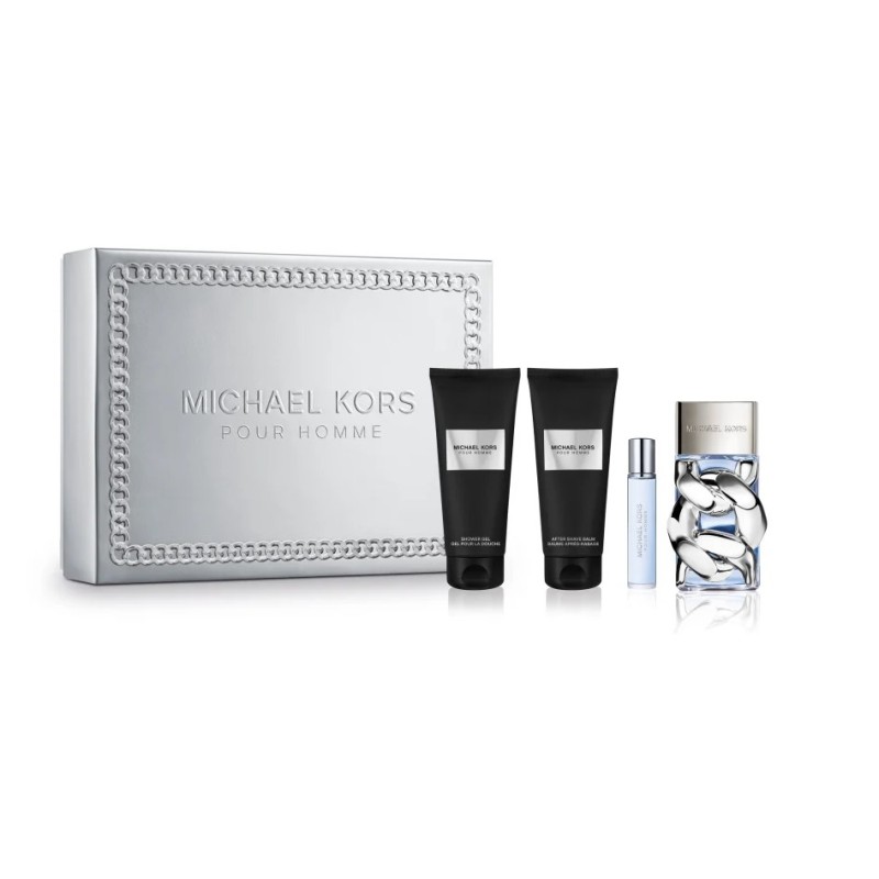 Michael Kors Pour Homme Подаръчен комплект попада в категорията на луксозните мъжки комплекти, които включват парфюмерия и продукти за лична грижа.