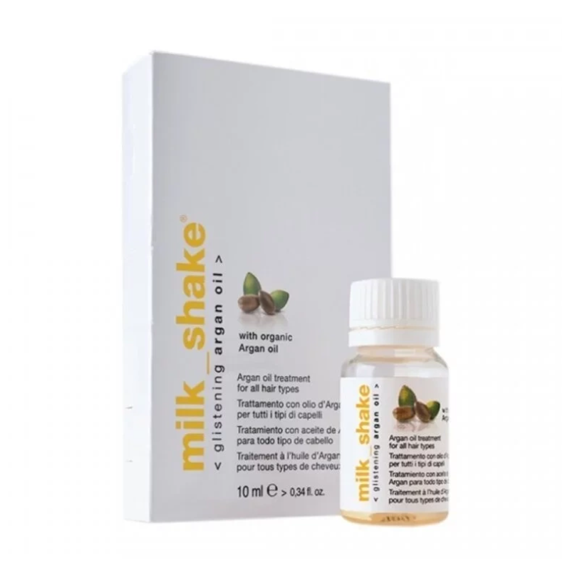 Milk Shake Glistening Argan Oil е маслена грижа, създадена с арганово масло, предназначена за всички видове коса. Този продукт е идеален за подхранване, хидратация и защита на косата, придавайки й блестящ вид и здравина. С формула, обогатена с натурални съставки, аргановото масло работи в дълбочина, възстановявайки структурата на косата и предпазвайки я от увреждания. Целевата аудитория включва хора, които търсят универсално решение за грижа за косата, независимо от типа или състоянието на косата.