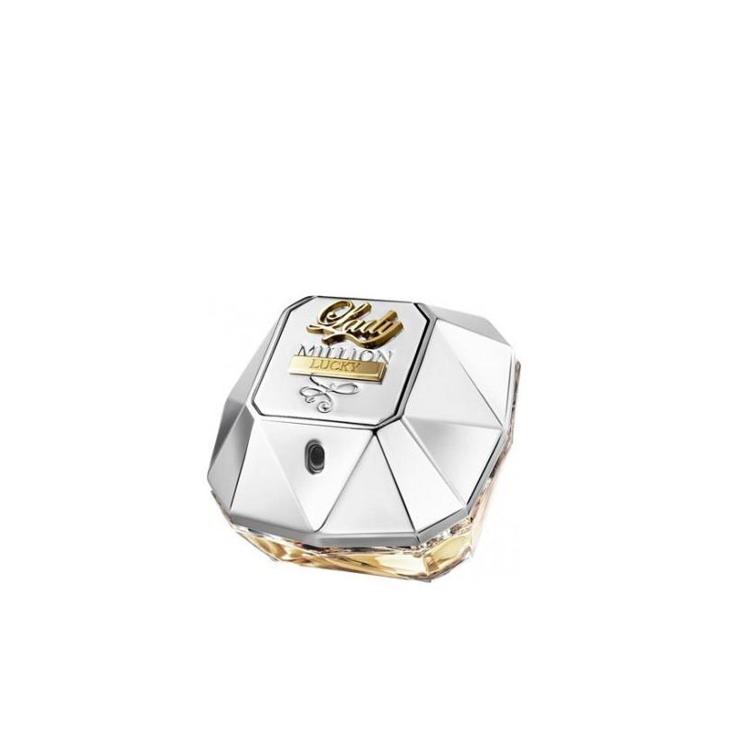 С Rabanne Lady Million Lucky ще се насладите на истинска флорална еуфория и неустоима свежест. Жизнената композиция ангажира сетивата с пленителното игриво ухание на малина и есенция от портокалови цветчета. Те ни отвеждат до сърцето на аромата, където Нейно Величество - роза Дамасцена разкрива целия си блясък. Съвършенството й е подчертано с нежен жасмин и лешник. Изумителната композиция завършва с акорди пчелен мед, сандалово дърво, кедър и кашмеран. Парфюмът е представен на пазара през 2018 година, заедно със своята по-силна половинка Rabanne 1 Million Lucky Парфюм за мъже EDT. Бутилката запазва класическата за колекцията форма, но не и дизайна. Този път той е вдъхновен от комбинацията между бяло и жълто злато.
