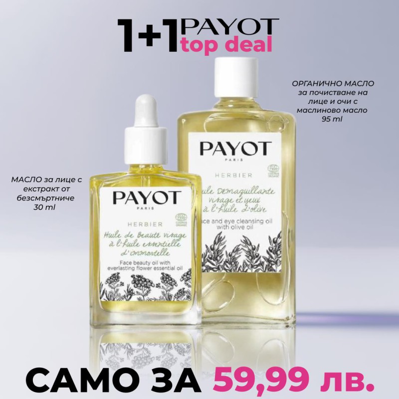Payot Herbier Organic промоционален комплект Масло за лице с екстракт от безсмъртниче 30 ml + Органично масло за почистване на лице и очи с маслиново масло 95 ml