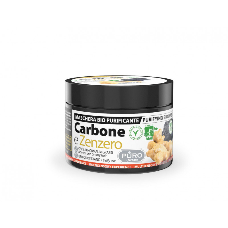 Puro by Forhans Маска за коса с джинджифил и въглен почиства и пречиства косата и скалпа, без да ги омазнява. Идеален е за честа употреба и за мазна коса със склонност към омазняване, благодарение на естествената си формула. Въгленът помага за премахване на замърсяванията, а джинджифилът енергизира и пречиства скалпа.