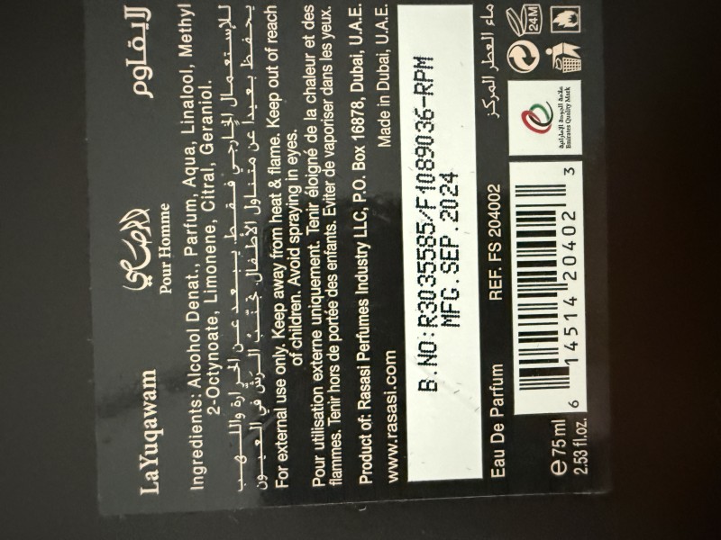Първоначално представен в 2012 г., този парфюм е получил световно признание за своята висока стойност и неповторимост. Rasasi La Yuqawam е за мъже, които обичат да бъдат в центъра на вниманието и да носят парфюм, който изразява тяхната индивидуалност. С уникалната си композиция, той се превръща в истински символ на мъжественост и елегантност. Парфюмът е вдъхновен от Tom Ford Tuscan Leather.