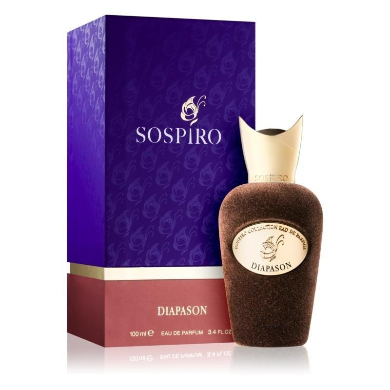 Sospiro Diapason е зашеметяващ унисекс аромат с дървесно-мускусен флорален характер. Почувствайте величието на българската роза и омайното ухание на египетския здравец. Потопете се в разгара на една хаитянска вечер, влезте в ритъма на нощта, ухаеща на гуайакова дървесина и марокански атласов кедър. Развълнувайте сетивата с чувствен кехлибар, пикантен ветивер и секси мускус. Пристрастяващ и незабравим, ароматът на Diapason се настанява трайно в съзнанието ви и няма да поискате да ви напусне. Уникалното творение на Sospiro е представено на пазара през 2017 година.