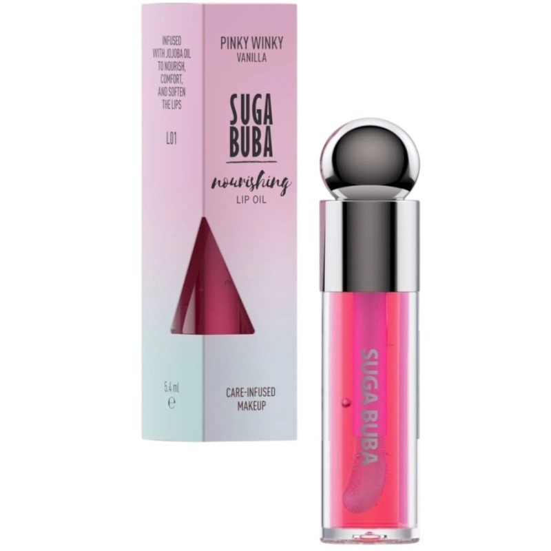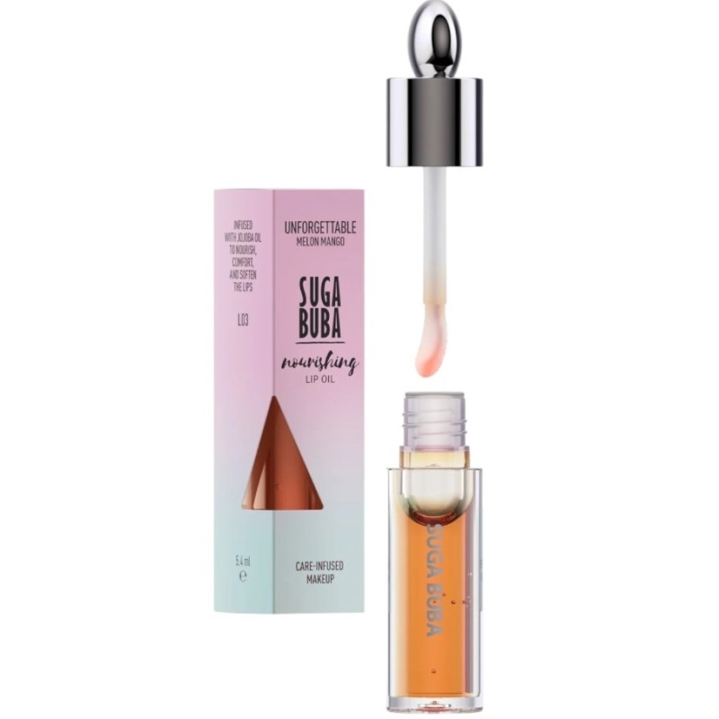 Suga Buba Unforgettable Nourishing Lip Oil е създадено, за да предостави на устните ви интензивна хидратация и подхранване. Обогатен с подхранващи съставки като масло от жожоба, баобаб и слънчогледово масло, този продукт дълбоко хидратира и подхранва устните. Формулата осигурява леко докосване на цвят, като оставя устните меки, гладки и младежки..