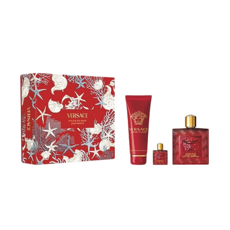 Versace Eros Flame се предлага като 30, 50, 100 и 200 мл парфюмна вода, 100 мл лосион за след бръснене, 100 мл балсам за след бръснене, 75 мл дезодорант стик, 100 мл дезодорант и 250 мл душ гел.