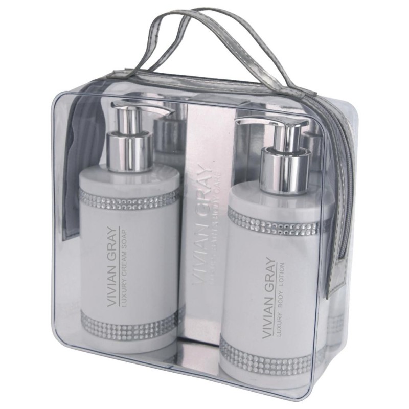 Подарете лукс, грижа и внимание с прекрасният комплект на Vivian Gray - White Crystal . Два очарователни продукта, които крият в себе си прекрасното ухание на зелен чай и ободряващи цитрусови акорди. Богатата им кремообразна формула се грижи за хидратацията на кожата и оставя след себе си вълшебен аромат. Лосионът за тяло и течният сапун са скрити в красиви шишенца, инкрустирани с камъни. Продуктите могат да бъдат използвани ежедневно. Дерматологично тествани. Подходящи и за чувствителна кожа!