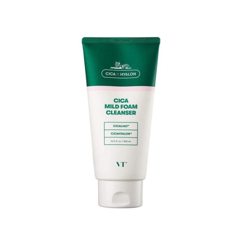 VT Cosmetics Cica Mild Foam Cleanser е деликатна почистваща пяна, специално разработена за чувствителна и раздразнена кожа. Тя ефективно отстранява замърсяванията, излишния себум и остатъците от грим, без да дразни или изсушава кожата. Благодарение на съдържанието на екстракт от центела азиатика (Cica), този продукт има успокояващо и възстановяващо действие.
