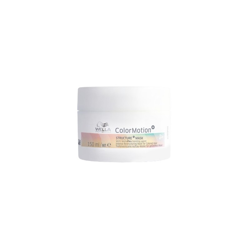 Color Motion+ STRUCTURE+ МАСКА С WELLAPLEX СВЪРЗВАЩИ АГЕНТИ Спомага за възстановяване на връзките в косъма. За по-силна коса. Добавя гладкост и блясък за отлично отразяване на цвета. Интензивна формула, може да се използва на всеки 1-2 седмици. СЪСТАВ: Aqua/Water/Eau, Bis-Hydroxy/Methoxy Amodimethicone, Stearyl Alcohol, Stearamidopropyl Dimethylamine, Malic Acid, Parfum/Fragrance, Glutamic Acid, Panthenol, Benzyl Alcohol, Phenoxyethanol, Ethylhexyl Methoxycinnamate, Octocrylene, Dicetyldimonium Chloride, Methylparaben, Propylparaben, Histidine, Disodium EDTA, Propylene Glycol, Glyoxylic Acid, Sodium Chloride, Linalool, Limonene, Geraniol, Citronellol, Citric Acid, Persea Gratissima (Avocado) Oil, Trimethylsiloxysilicate, BHT