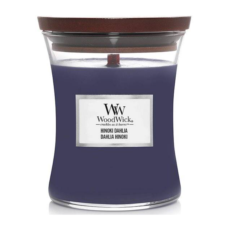 WoodWick Hinoki Dahlia Candle е изискана ароматна свещ, която съчетава деликатна сливова мекота, тъмни плодове и цветна елегантност от далия. Композицията придобива дълбочина и характер благодарение на хиноки дърво и кехлибар, които добавят топлина и чувственост. Ароматът е балансиран между свежест и мистериозна дървесна дълбочина, носейки усещане за спокойствие и уют.