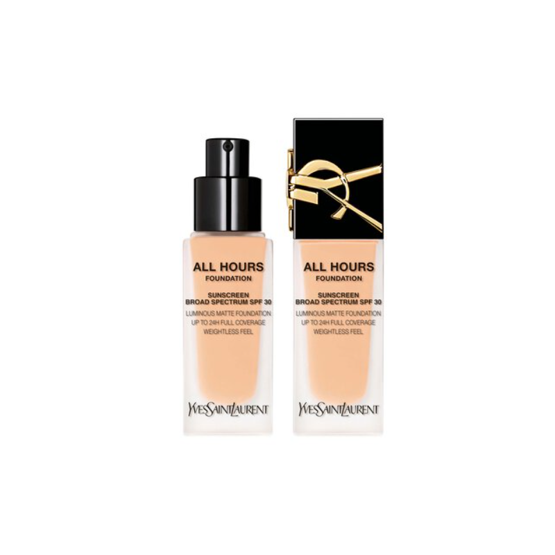 YSL All Hours Foundation е дълготраен фон дьо тен, който осигурява безупречно покритие до 24 часа. Формулата му е лека, но в същото време богата и силно пигментирана, осигуряваща матов финиш без усещане за тежест. Благодарение на добавения SPF 30, продуктът предпазва кожата от вредното влияние на слънцето. Текстурата се разнася лесно и прикрива несъвършенствата, зачервяванията и тъмните петна. Подходящ е за всички типове кожа, включително мазна, тъй като контролира блясъка през целия ден. Формулата е устойчива на изпотяване, протриване и топлина. Осигурява свеж, естествен вид, без да се напуква или избледнява. Съдържа активни съставки, които хидратират и се грижат за кожата. С YSL All Hours Foundation тенът остава съвършен от сутрин до вечер.